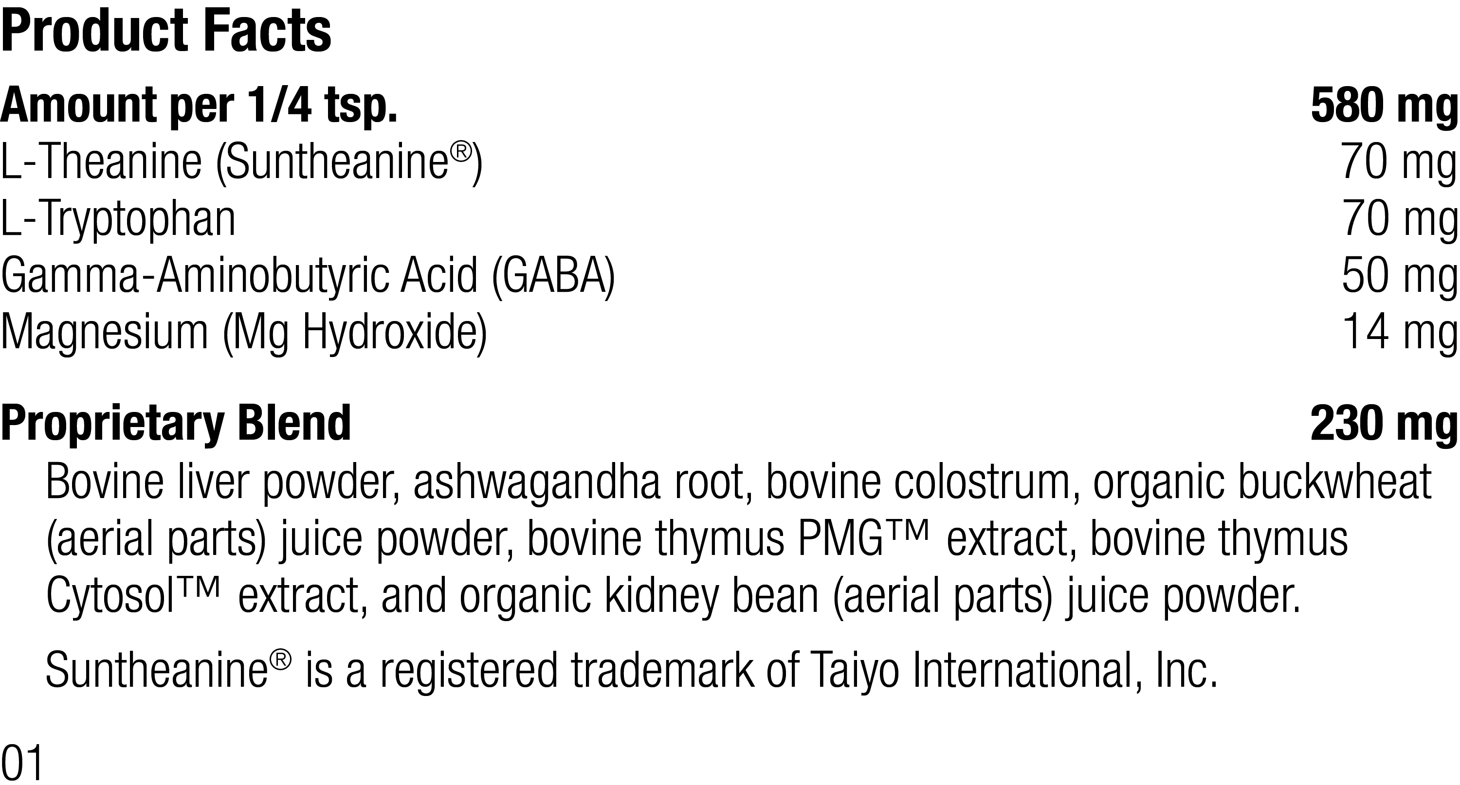 - Contains a blend of amino acids that interact with calming neurotransmitter pathways