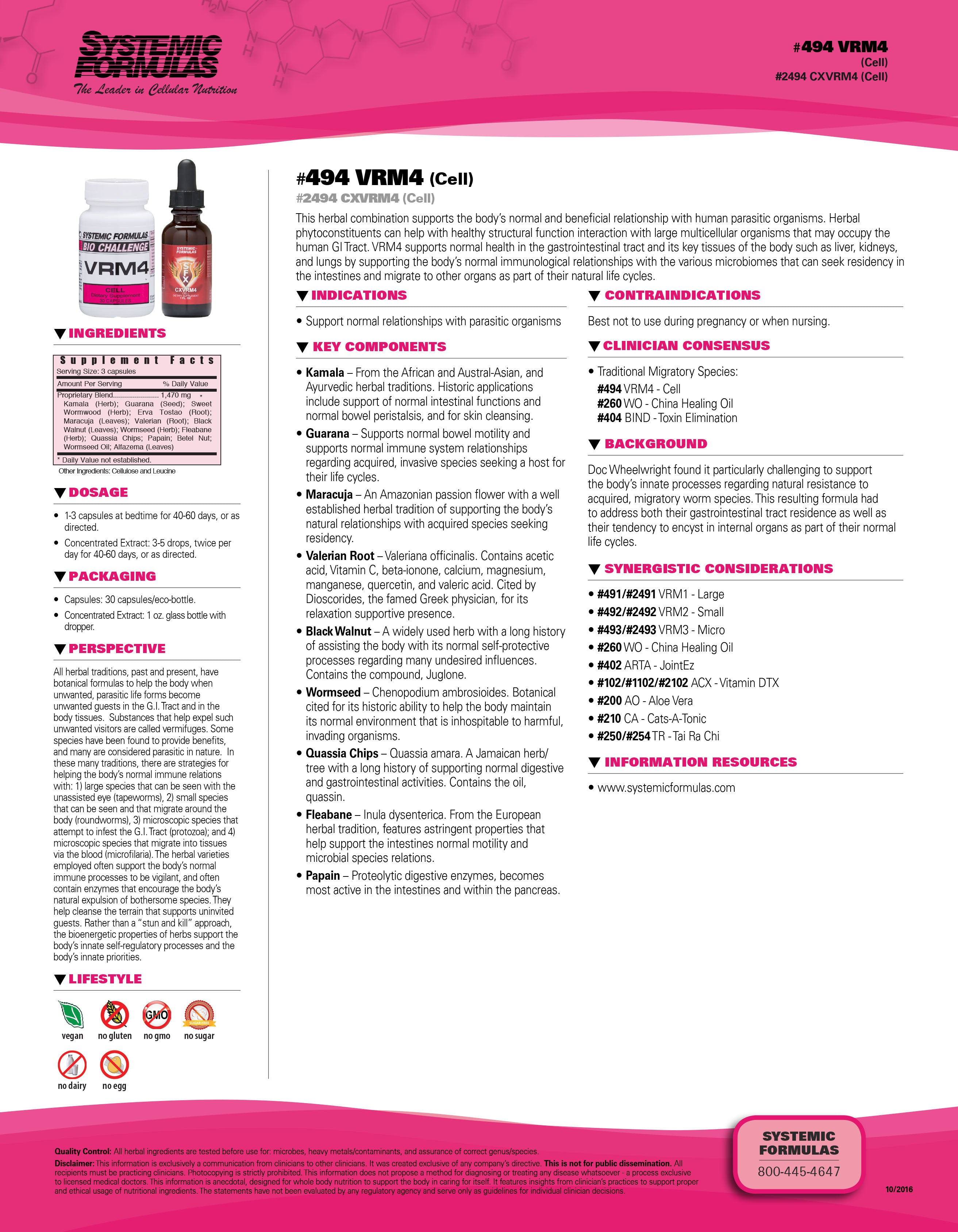 Systemic Formulas VRM4 Cell is a powerful, science-based herbal formula crafted to promote optimal cellular health, detoxification, and vitality.